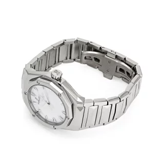 伝統的な時計とは一線を画す、近未来的なデザインが気に入っています。スーツの袖口からチラリと見える多面カットが非常にお洒落です。