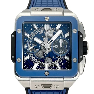 ウブロ HUBLOT スクエア・バンウニコ チタニウム ブルーセラミック 821.NL.5170.RX ネイビー文字盤 腕時計 メンズ