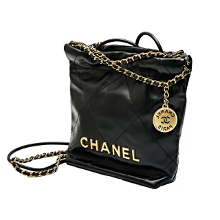 CHANEL シャネル22 ミニ ハンドバッグ レザー ブラック イエローゴールド金具