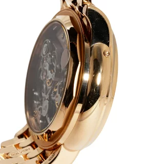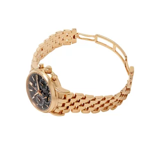 ローズゴールドの温かみと、ブラック文字盤の冷徹な輝き。この対比が、腕元にドラマチックな表情を与えてくれます。眺めるたびに新たな発見がある美しさです。