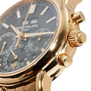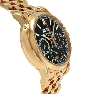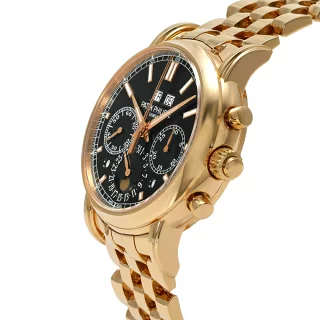 全面ローズゴールドの圧倒的な存在感に、黒漆のような文字盤が完璧に調和しています。これこそがパテック フィリップの誇る、時計界の最高到達点です。