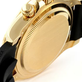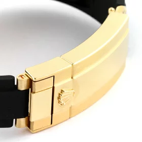 オイスターフレックス(ラバーベルト)なので、金無垢ながらも軽快に装着できます。スポーティーさと豪華さが完璧に融合しています。