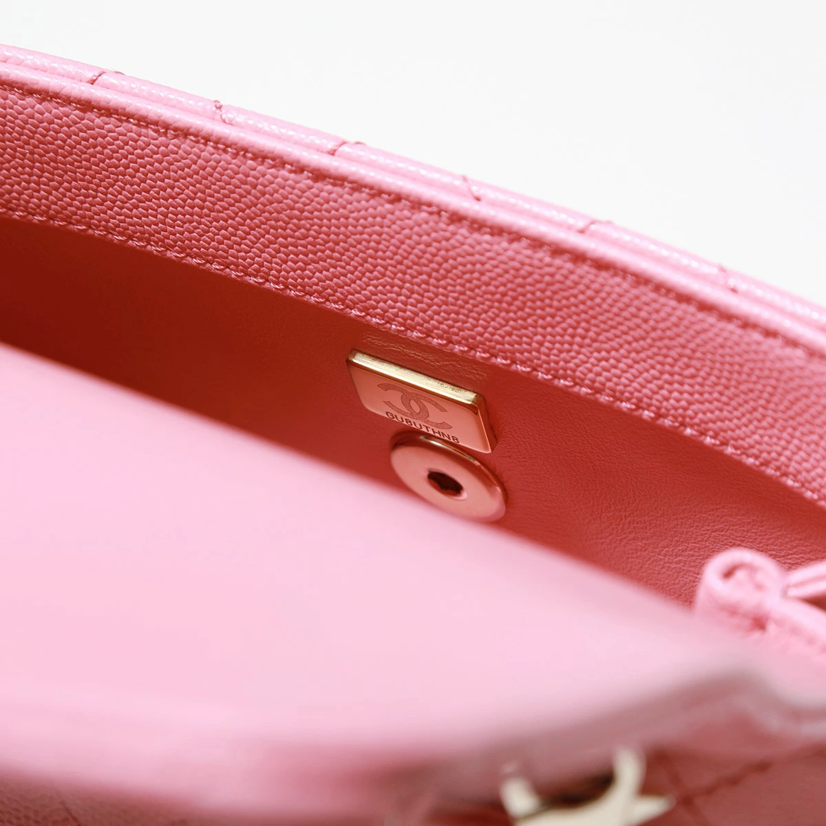 ピンクのレザーにシャンパンゴールドの金具が映えて、とてもラグジュアリーです。正真正銘の新品で、細部まで作り込まれた美しさにうっとりしてしまいます。